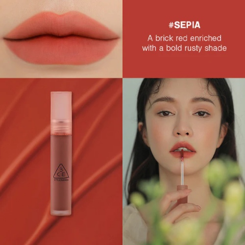 3CE BLUR WATER TINT 4.6g #SEPIA - это ультрамодный и стильный продукт для губ от популярного южнокорейского бренда 3CE. Этот тинт обеспечивает идеальное матовое покрытие с глубокими оттенками, которые подчеркивают естественную красоту губ. Он создает эффект роскошных и объемных губ, придавая образу неповторимый шарм.